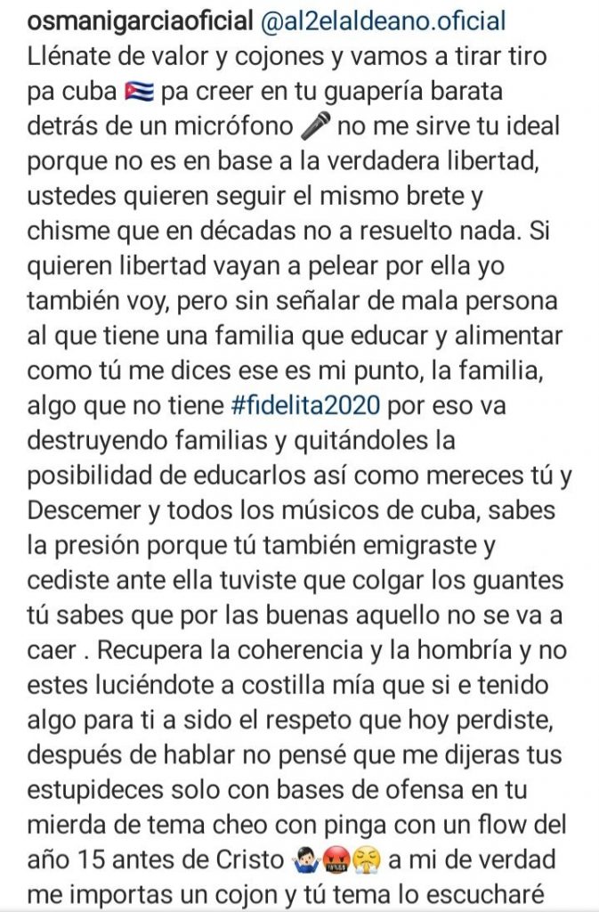 Esta negativa molestó a el “Chiquitico de Cuba” y fue el motivo que lo llevó a publicar estas capturas en su Instagram, reclamándole al rapero que se llenara de valor y “fuera a tirar tiros para Cuba”.