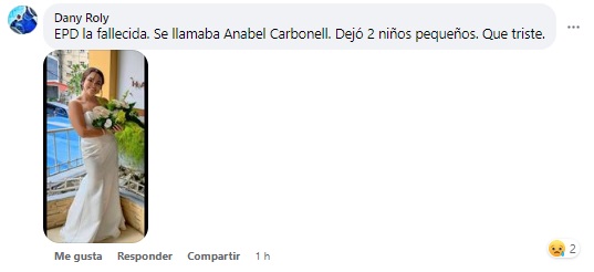 Según algunos usuarios de Facebook, la fallecida fue identificada como Anabel Carbonell, quien dejó atrás a dos hijos pequeños.