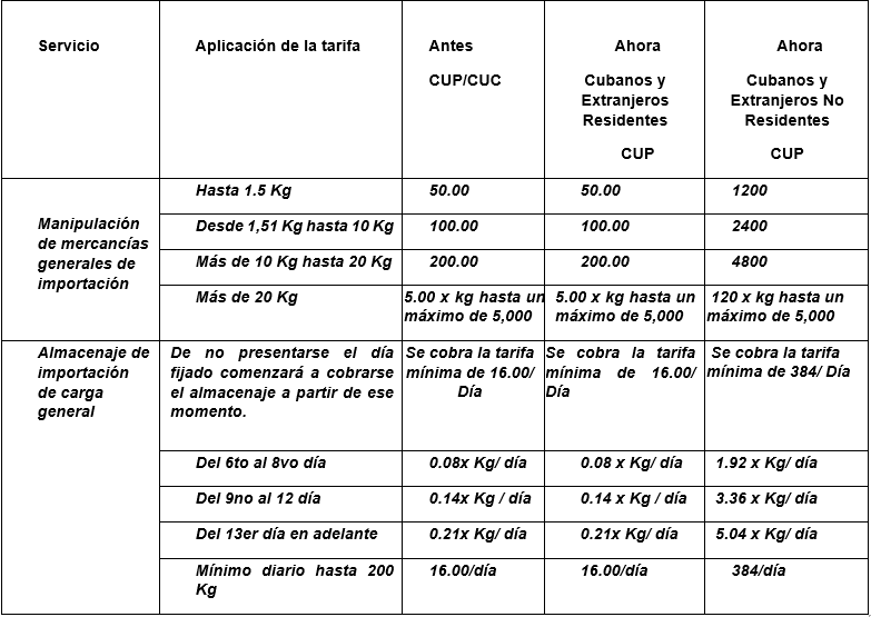 Informamos a todos nuestros clientes que no hemos realizado modificación alguna a nuestras tarifas, solamente se ha ajustado en pesos cubanos (CUP), el valor a pagar por los cubanos y extranjeros no residentes en Cuba, que anteriormente lo hacían en CUC, teniendo en cuenta la unificación monetaria y la tasa de cambio determinada por el Banco Central de Cuba.