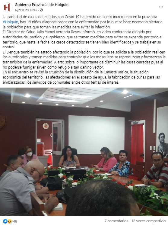 Como consecuencia, el Gobierno Provincial de Holguín utilizó un comunicado oficial compartido en redes sociales para alertar a la población de un ligero incremento en el número de casos.