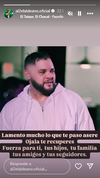 “Lamento mucho lo que te pasó, asere, ojalá te recuperes. Fuerza para ti, tus hijos, tu familia, tus amigos y tus seguidores”, expresó en sus historias de Instagram.