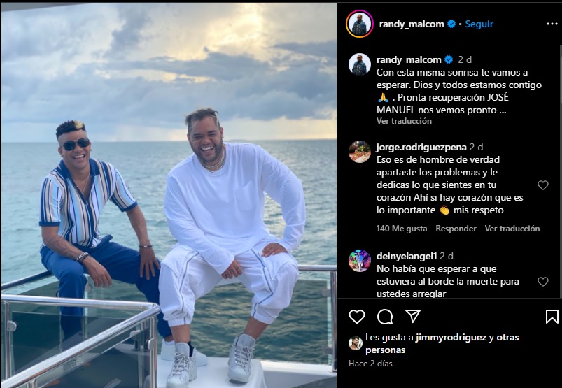 A su vez, el integrante del dúo Gente de Zona, Randy Malcom, escribió en sus redes, incluso aunque también sus últimas interacciones fueron de enemistad, con El Taiger insultándolo y provocándolo en redes.