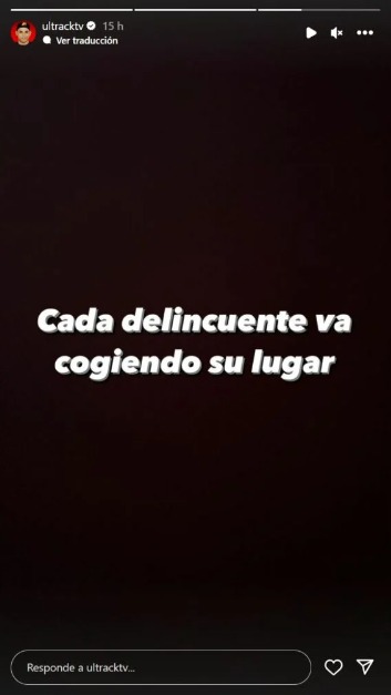 A pesar de esto, Ultrack reaccionó al hecho desde sus historias de Instagram, con una indirecta en texto en fondo negro que muestra su satisfacción por lo ocurrido con Arencibia.