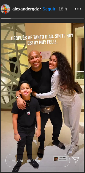 “Después de tantos días sin ti. Hoy estoy muy feliz”, escribió el cantante en su historia de Instagram, mientras sonaba el tema de Álvaro Torres, “Chiquita mía”.