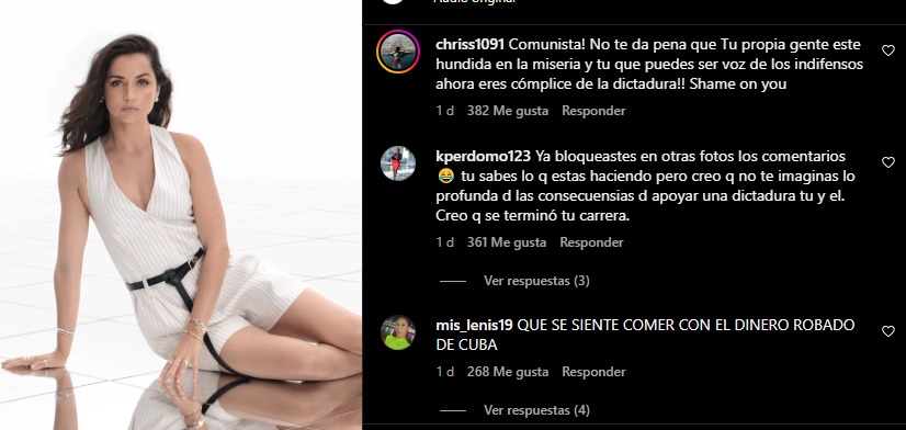 La indiferencia que ha mostrado la cubana por su país natal lastimó grandemente a su pueblo, que no se reservó su opinión y acudió a comentarle a la actriz en sus redes sociales, en tal medida que esta prefirió limitar los comentarios de sus publicaciones en Instagram.
