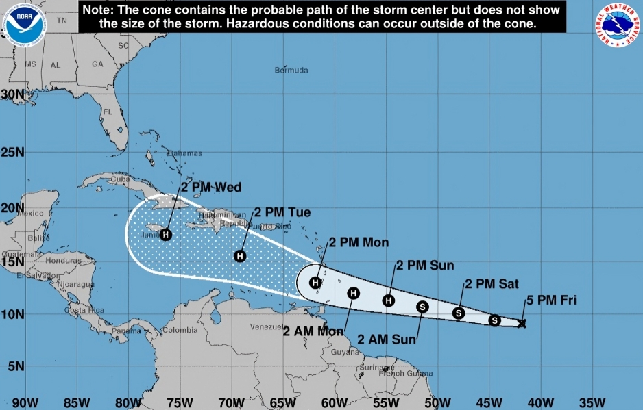 Ante esta situación, podrían emitirse alertas de huracán o tormenta tropical para Trinidad y Tobago, Martinica, Basse Terre, Grande Terre, Dominica, Santa Lucía y Barbados, durante esta noche o temprano del sábado.