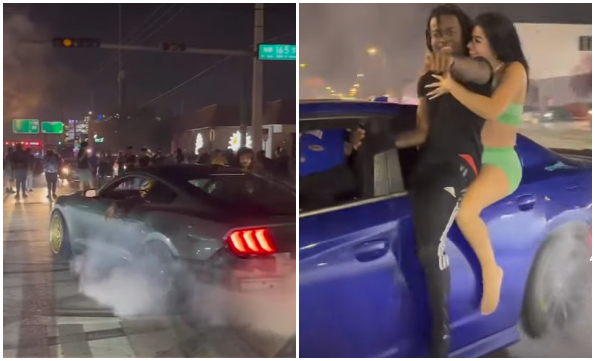 Videos que fueron compartidos en línea mostraron también que los conductores se dedicaron a realizar las denominadas donas (donuts), que consisten en girar el vehículo en un solo lugar, usando los neumáticos para dejar marcas en forma de círculos sobre el asfalto.