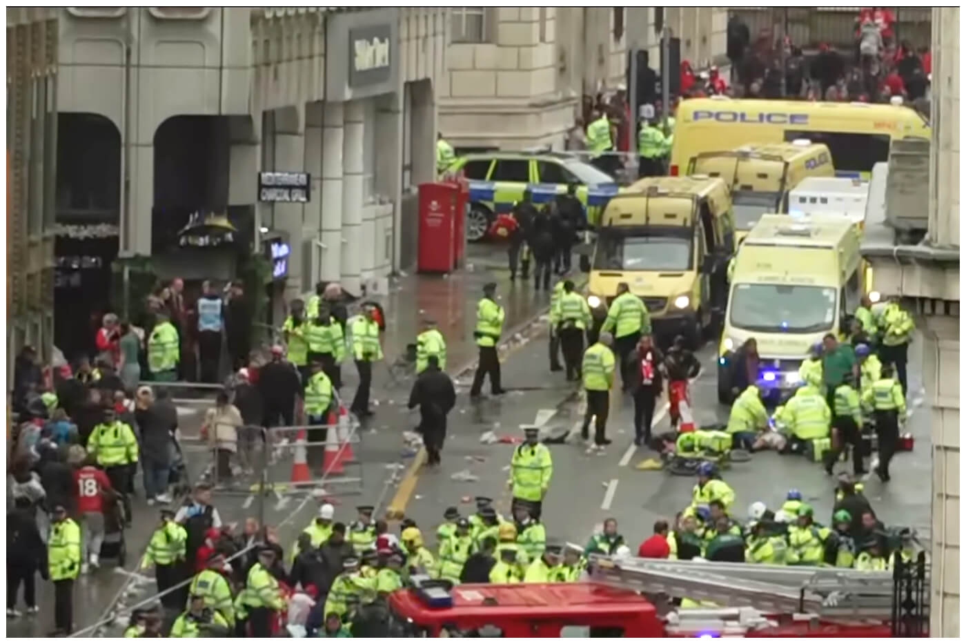 El hecho ocurrió después de que un vehículo irrumpiera entre los asistentes al desfile en Liverpool, poco después de que pasara el autobús del equipo por Water Street, donde miles de personas festejaban bajo la lluvia.