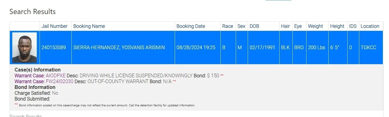 De acuerdo con el reporte de las autoridades del condado, el intérprete de Bajanda fue detenido por conducir con una licencia suspendida, además de tener una orden de arresto de otro condado.
