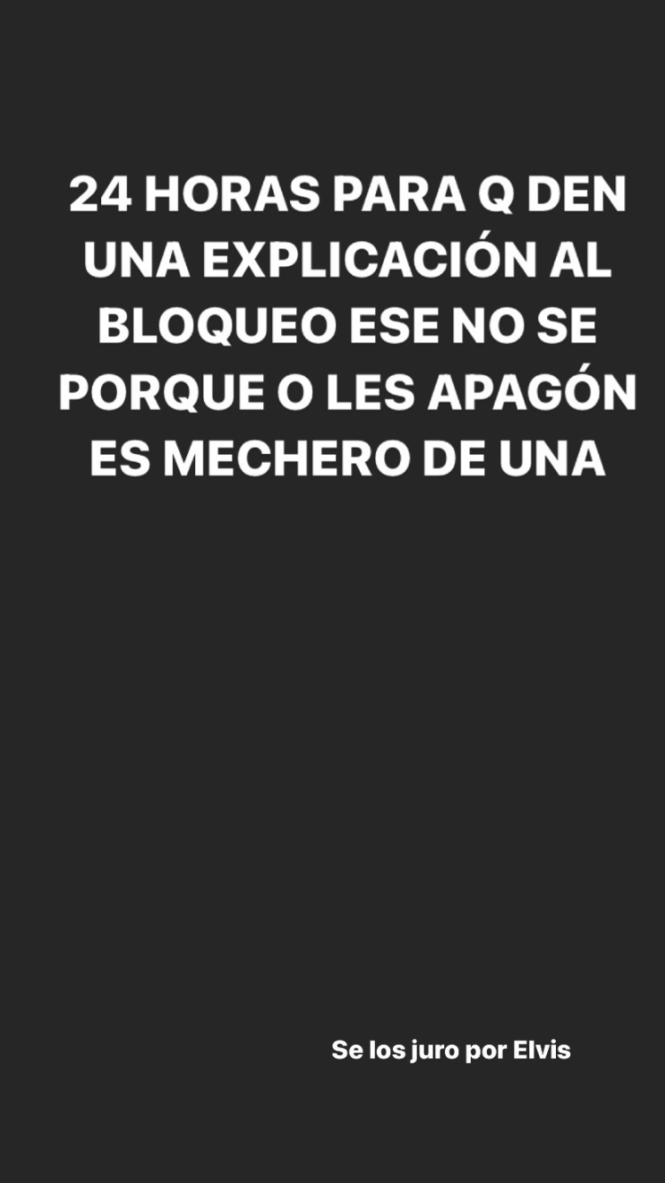 “Veinticuatro horas para que den una explicación al bloqueo ese que, no sé por qué, o les apago ese mechero de una. Se los juro por Elvis Manuel”.