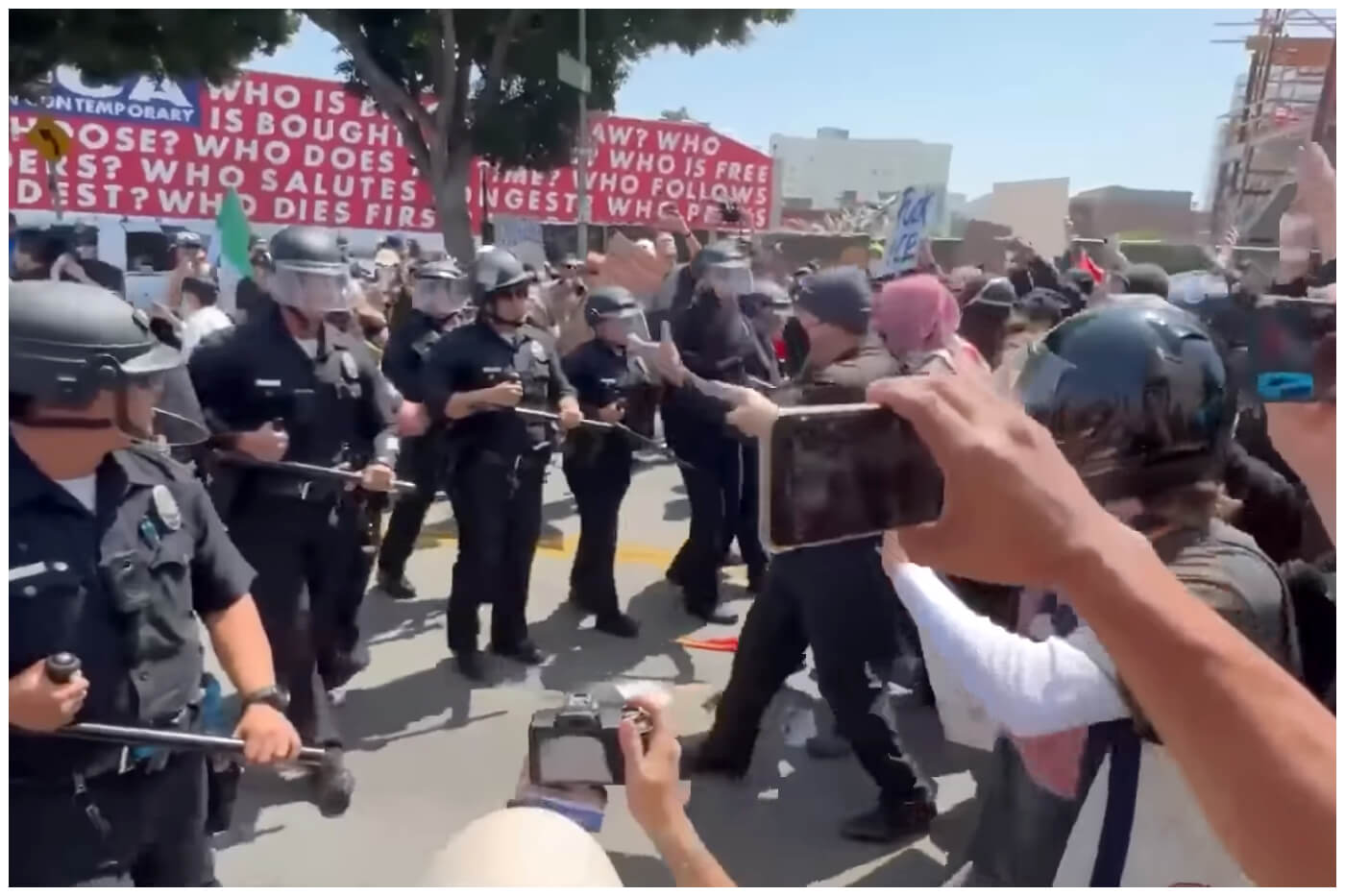 Rodríguez utilizó imágenes de las protestas que se están desarrollando actualmente en Los Ángeles, y que se han extendido en los últimos días a otra veintena de ciudades importantes, como Nueva York, Seattle, y Las Vegas.
