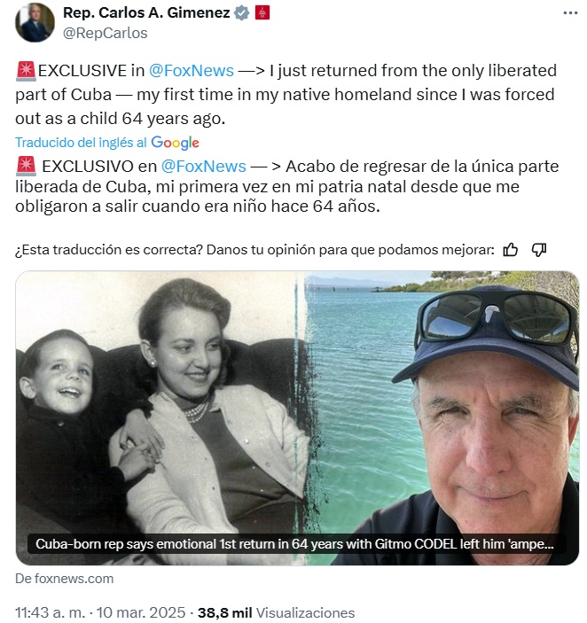 El congresista cubanoamericano Carlos A. Giménez regresó a Cuba por primera vez tras 64 años  de haber salido de la Isla, esto como parte de una delegación del poder legislativo de Estados Unidos que visitó la Base Naval de Guantánamo.