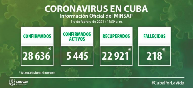 Con esta actualización, el país arriba a la cifra de 218 fallecidos en todo el territorio, luego de que se reportara el fallecimiento de 2 cubanos en las últimas 24 horas como consecuencia de complicaciones por el coronavirus.