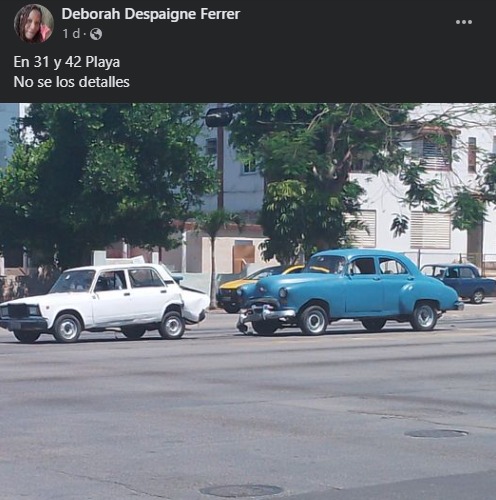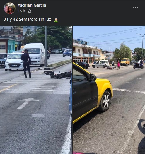 Otras dos publicaciones en el mismo grupo denunciaron accidentes ocurridos en la misma esquina de la capital cubana, ambos derivados del caos circulatorio por la falta de semáforos en la transitada intersección de la avenida 31 y la calle 42.