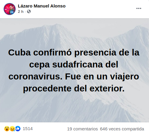 Cuba confirma presencia de cepa sudafricana de coronavirus ‘50 % más contagiosa’ (Foto: Lázaro Manuel Alonso-Facebook)
