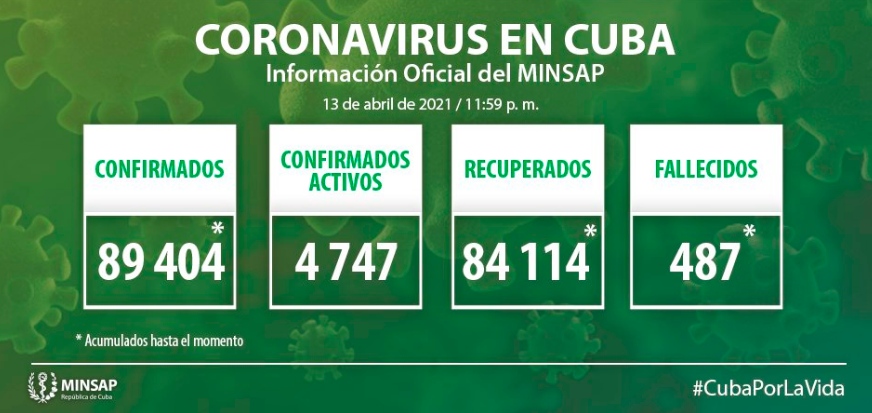 El Ministerio de Salud Pública de Cuba (MINSAP) reportó al cierre de este 13 de abril 959 nuevos casos confirmados de Covid-19 para un total de 89 mil 404 contagios desde el inicio de la pandemia en marzo del año pasado.