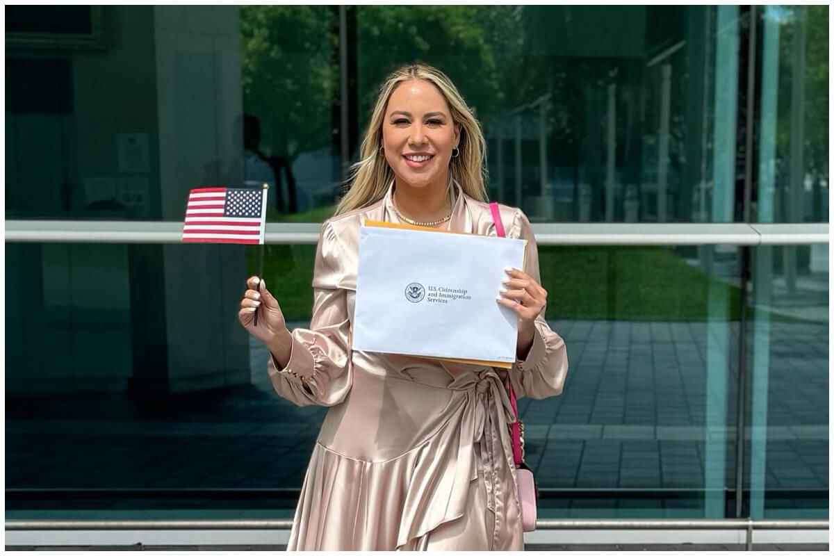 En su cuenta de Instagram, la Señorita Dayana compartió una foto suya, recién salida de la corte, en la que sostiene en una mano la bandera de Estados Unidos, y en la otra el sobre que la acredita como ciudadana del país.