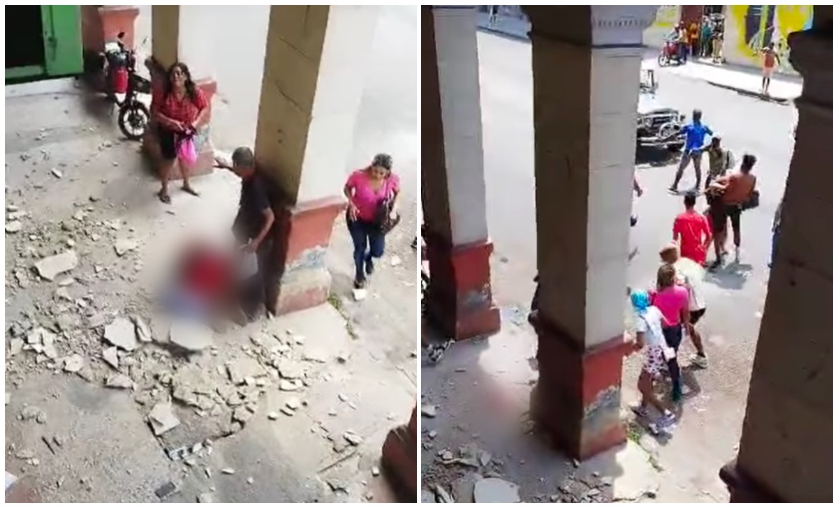 Varios cubanos acudieron a redes sociales para compartir el video de una mujer que terminó inconsciente en el suelo luego de que varios escombros la impactaran durante el derrumbe parcial del techo de un portal en el municipio capitalino de Centro Habana.