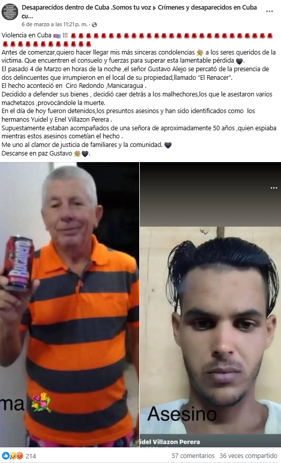 Las autoridades cubanas han identificado y capturado a los presuntos responsables del brutal asesinato de Gustavo Alejo Misa, un anciano residente en la comunidad de La Campana, en el municipio de Manicaragua, provincia de Villa Clara.