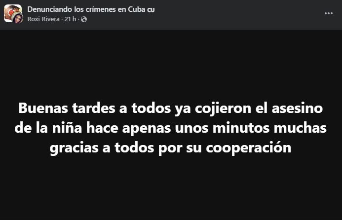 Roxi Rivera, quien afirmó ser prima de la víctima, confirmó la detención a través del grupo de Facebook “Denunciando los crímenes en Cuba”, donde también fue publicada la denuncia inicial el 22 de junio.