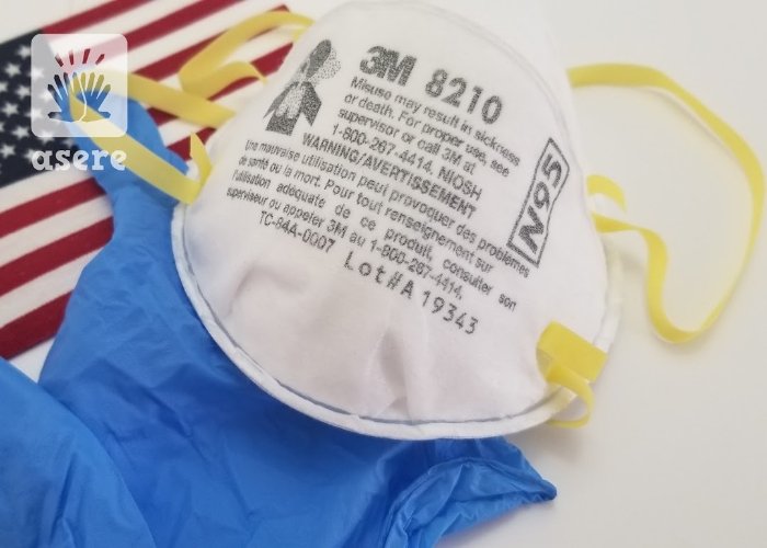 Nasobuco, guantes y bandera de EEUU (ASERE)