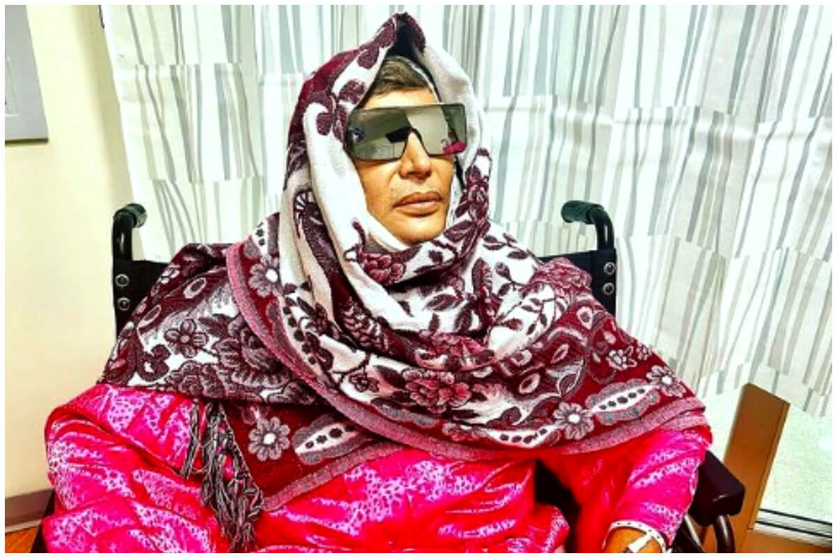 Apenas a unos días de haber salido del hospital tras una cirugía de emergencia que lo tuvo en terapia intensiva el intérprete se presentó a la ceremonia, con un atuendo en color plata y una mascada de lentejuelas que cubría el vendaje que lleva en el rostro, de su más reciente procedimiento estético.