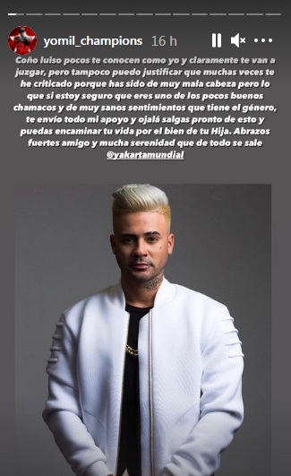 “Te envío todo mi apoyo y ojalá salgas pronto de esto y puedas encaminar tu vida por el bien de tu hijo. Abrazos fuertes, amigo, y mucha serenidad que de todo se sale”, agregó Yomil.