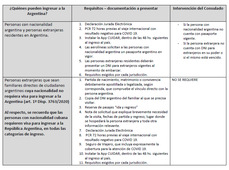 La Embajada de la República Argentina en Cuba ha publicado en sus redes sociales los nuevos requisitos de entrada al país sudamericano.