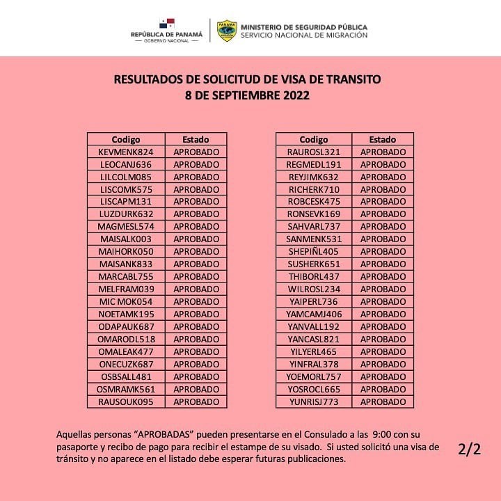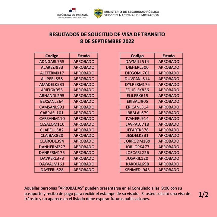 Mediante un comunicado compartido en redes sociales, la Embajada de Panamá en Cuba mostró los distintos listados, señalando que los 80 ciudadanos de la Isla que aplicaron para sacar un visado de tránsito fueron aprobados, con lo que podrán hacer una escala en el Aeropuerto Internacional de Tocumen, ubicado en Ciudad de Panamá.