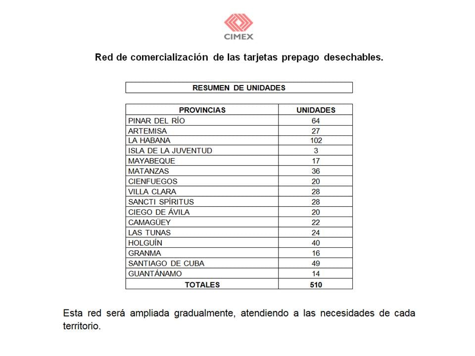 “Se informa a la población que comienza a partir del 15 de diciembre de 2020 la venta de tarjetas prepago desechables en la red de establecimientos comerciales adjunta, pertenecientes a la Corporación CIMEX, como forma de pago para la venta de combustibles al sector privado. Los establecimientos donde se comercialicen, contarán con toda la información de referencia ”, explicaron.