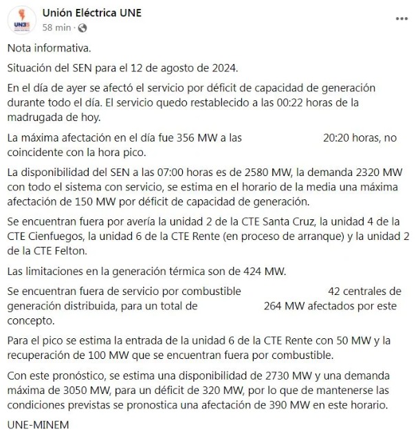 Mientras las potentes lámparas iluminan la famosa torre de la plaza, todo el fin de semana y este lunes 12 de agosto, el servicio eléctrico fue afectado en Cuba durante todo el día, con prolongados apagones de hasta varias horas.