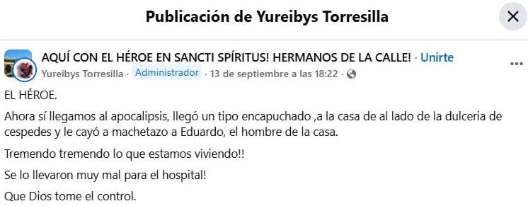 “Llegó con muchos machetazos, los doctores se apresuraron a atenderlo”, contó la usuaria Denaidis Castro.