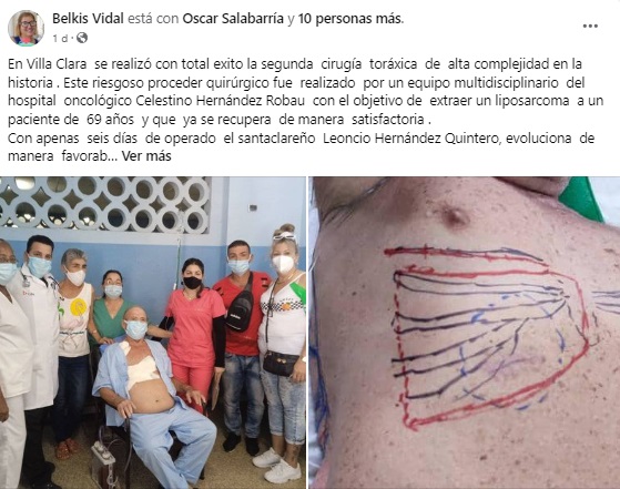 Según la periodista estatal Belkis Vidal, esto fue hecho por un equipo multidisciplinario que hizo todo lo posible por extraer un liposarcoma, un tipo de cáncer poco frecuente que afecta las células adiposas de un paciente.