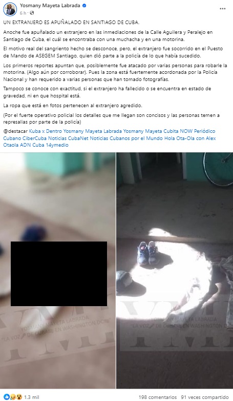 Seguidores del periodista revelaron más detalles sobre el hecho, señalando en la sección de comentarios que el extranjero fue llevado al Hospital Provincial ‘Saturnino Lora’, a donde llegó después de haber perdido mucha sangre.