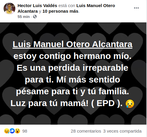 Asimismo, el también activista Héctor Luis Valdés se hizo eco de la noticia y escribió: “Luis Manuel Otero Alcántara estoy contigo hermano mío. Es una pérdida irreparable para ti. Mi más sentido pésame para ti y tú familia. Luz para tú mamá! (EPD)”.