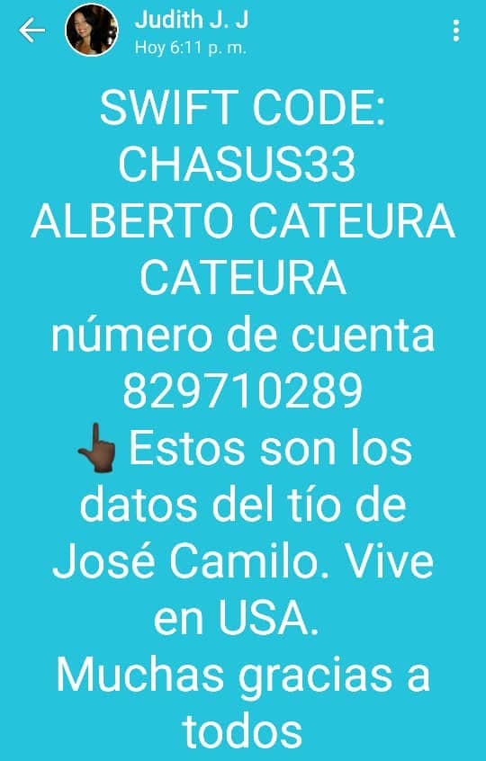 Por último, la publicación compartió los datos necesarios para que cualquier persona interesada en ayudar al menor pueda hacer una donación. Esta información incluye el nombre de Alberto Cateura Cateura como la persona que recibirá el dinero, así como el Swift Code: CHASUS33, y el número de cuenta 829710289.