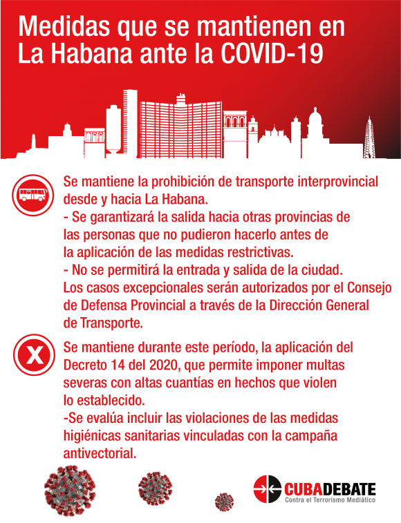También durante este período se mantendrán la “severas multas” a los cubanos que violen las medidas impuestas por el gobierno con “la aplicación del Decreto 14 de 2020, que permite imponer multas con altas cuantías en hechos en los que se viole lo establecido”