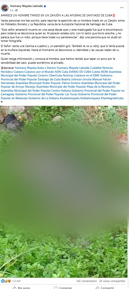 El periodista independiente Yosmany Mayeta Labrada informó del suceso a través de redes sociales, luego de recabar testimonios de vecinos de la zona. Uno de ellos aseguró que el hombre habría muerto el día anterior, y que fue hasta este miércoles que fue encontrado.