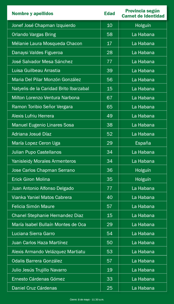 El medio oficialista Cubadebate compartió un listado con los nombres de las últimas cuatro personas identificadas, las cuales eran residentes de La Habana.