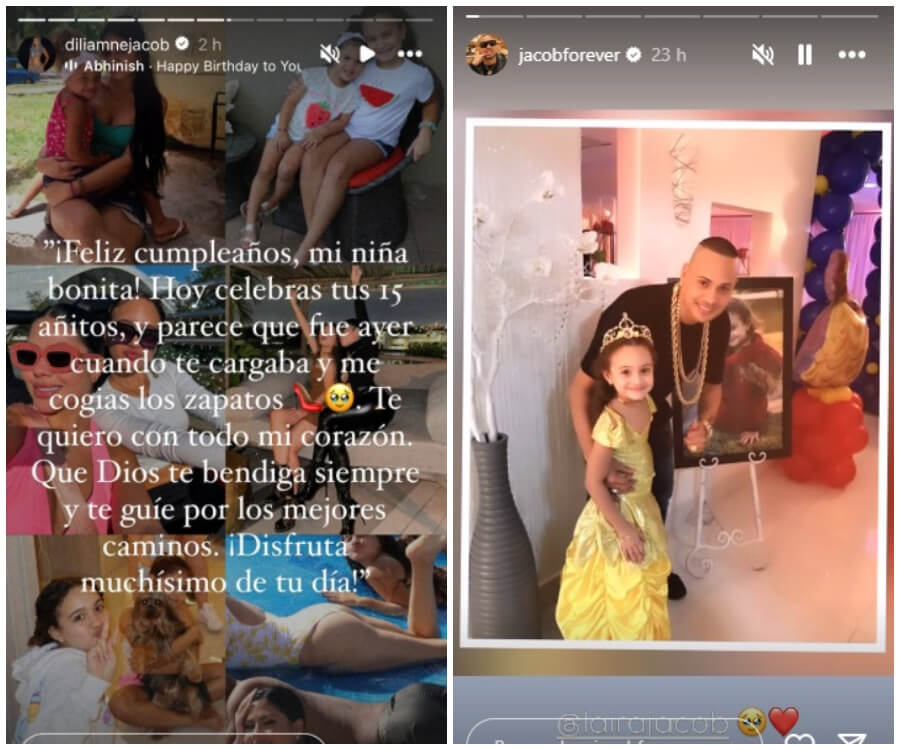 “Muchas, muchas felicidades mi amor, te deseo mucha salud, larga vida, prosperidad y muchos éxitos en todo lo que te propongas, estoy muy orgulloso de ti, de tu belleza, y tu nobleza, ya hoy cumples 15 años, que rápido pasa el tiempo, te amo mucho”, le dedicó Jacob a su niña.