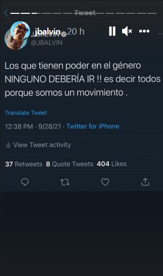 A través de su cuenta de Twitter, Balvin aseguró que los reconocidos premios, no valoran el talento urbano, alegando que no les dan el respeto que merecen.
