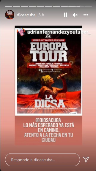 “He pasado una pila de meses tratando de poder lograr esta gira para cantarle a mi gente de Europa, las cuales yo sé que llevan mucho tiempo esperándome. Tanta gente que me escribía y me decían: ¿Diosa, cuándo tú vienes a Europa? Y yo no sabía qué decirles, porque yo estaba realmente tratando de llegar”, declaró en un video compartido en su cuenta de Instagram.