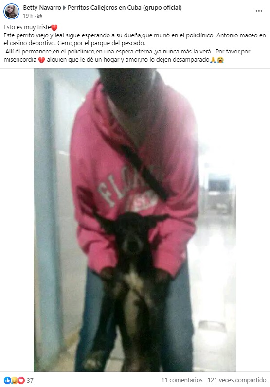 “Esto es muy triste. Este perrito viejo y leal sigue esperando a su dueña, que murió en el policlínico Antonio Maceo, en el Casino Deportivo, en el Cerro”, detalló la internauta Betty Navarro, quien compartió una fotografía del animal.