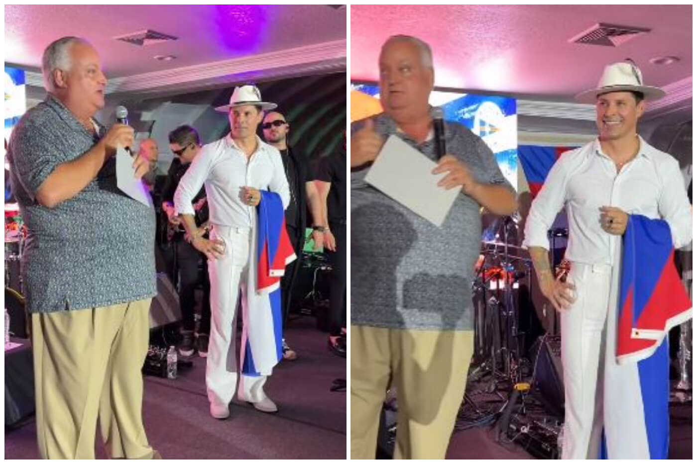 Durante el concierto, ondeó la bandera cubana desde el escenario, en medio de aplausos del público. El momento fue compartido en redes sociales, donde circularon videos e imágenes del evento.