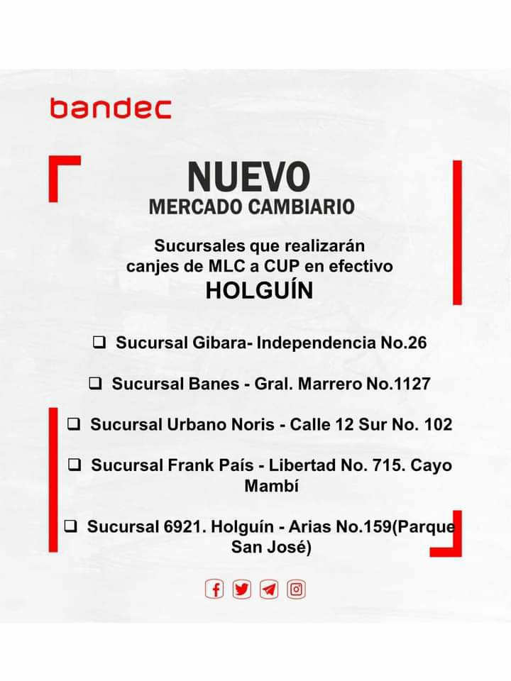 Listado de sucursales bancarias que compran dólares en Cuba. (Imagen: Cubadebate)