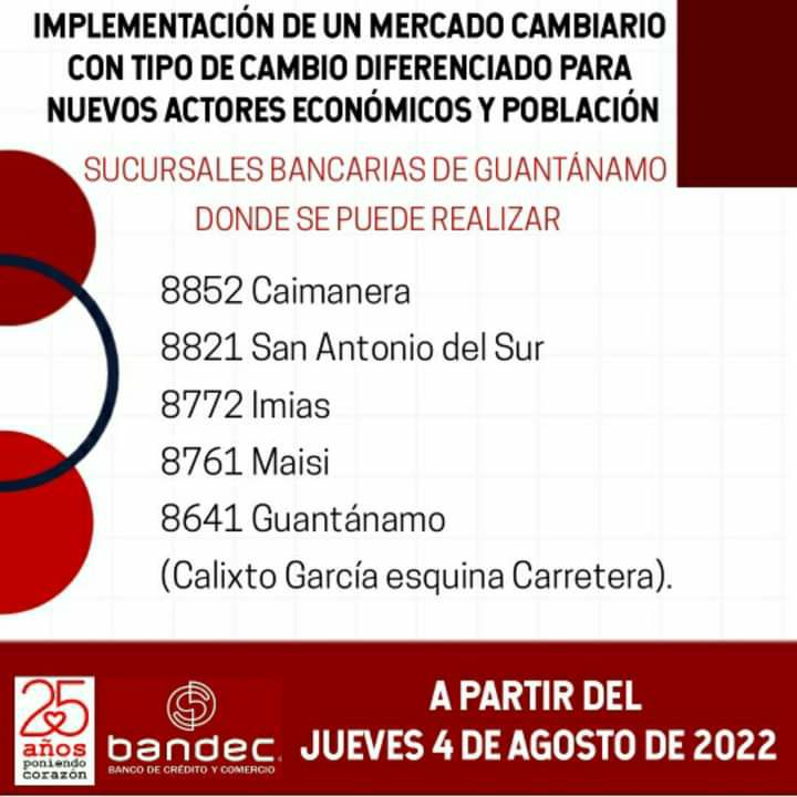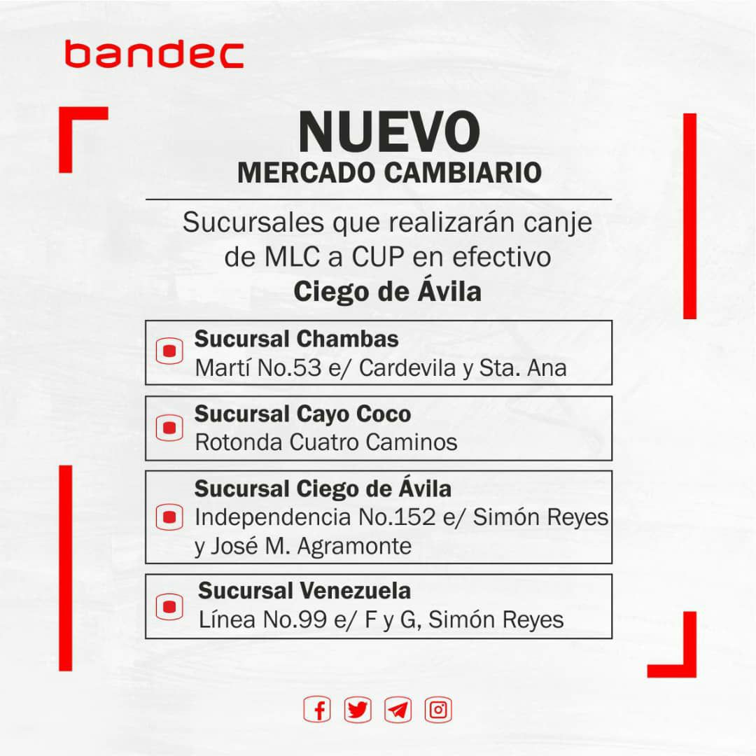 Para ello, comenzó a utilizar algunas sucursales de los principales bancos de Cuba: Banco de Crédito y Comercio (Bandec) y Banco Metropolitano, así como las Casas de Cambio (Cadeca), en especial las cercanas a los aeropuertos.