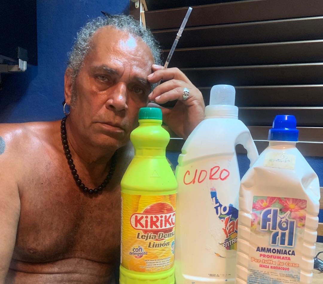 El veterano artista compartió desde su Instagram una foto en la que aparece junto a tres botellas con productos de limpieza y un vaso de cristal. En el post escribió: “Propuesta Presidencial”.