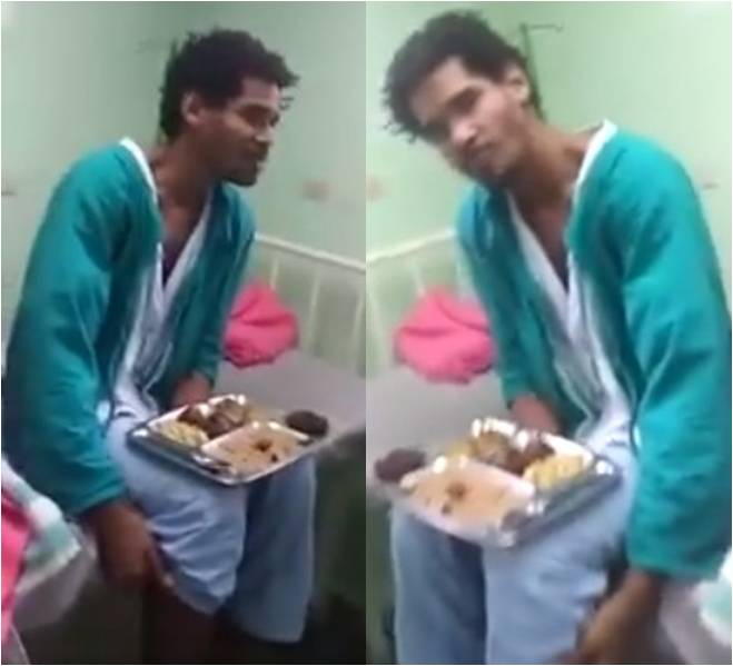 Las imágenes lo muestran sentado en una camilla con una bandeja de comida sobre sus piernas. Esto fue durante la visita de un tío de Luis Manuel. Quien graba el video parecer ser el médico que lo mantiene vigilado.