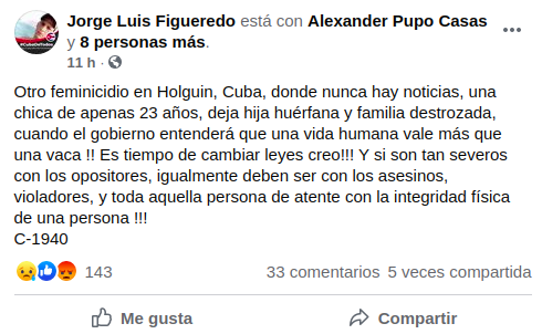 Mientras tanto, la usuaria Yurima González recriminó que este tipo de noticias no se mencionan en el noticiero de la televisión cubana, además de recordar que su hija fue asesinada cuando tenía cuatro años y nunca se hizo justicia.