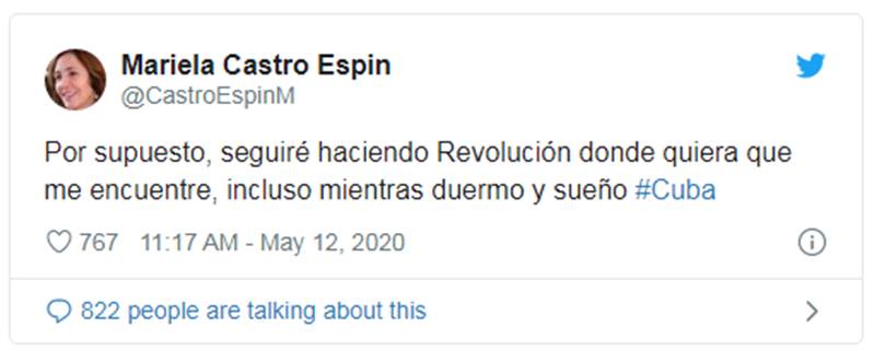 “Por supuesto, seguiré haciendo revolución donde quiera que me encuentre, incluso mientras duermo y sueño #Cuba”, dijo en otro tuit.